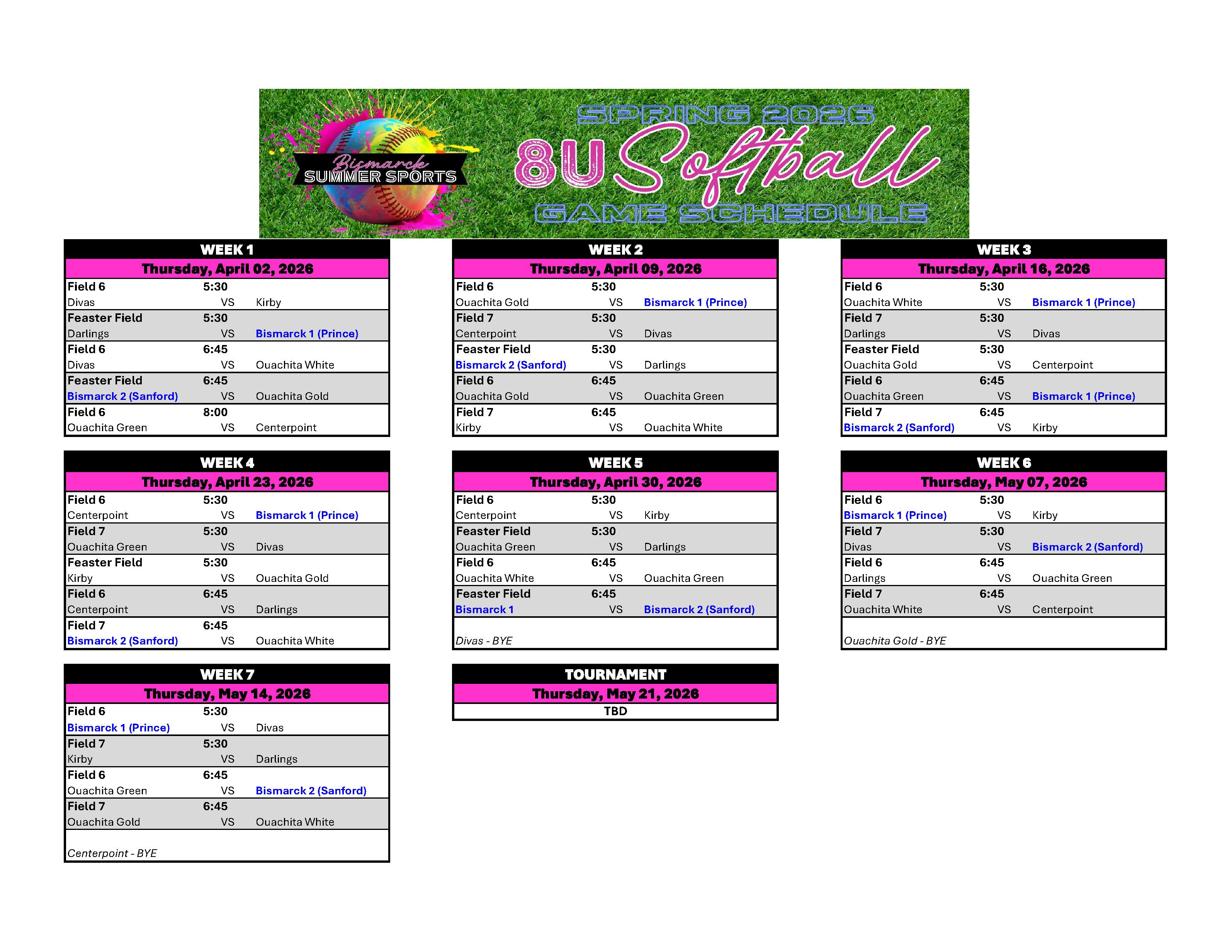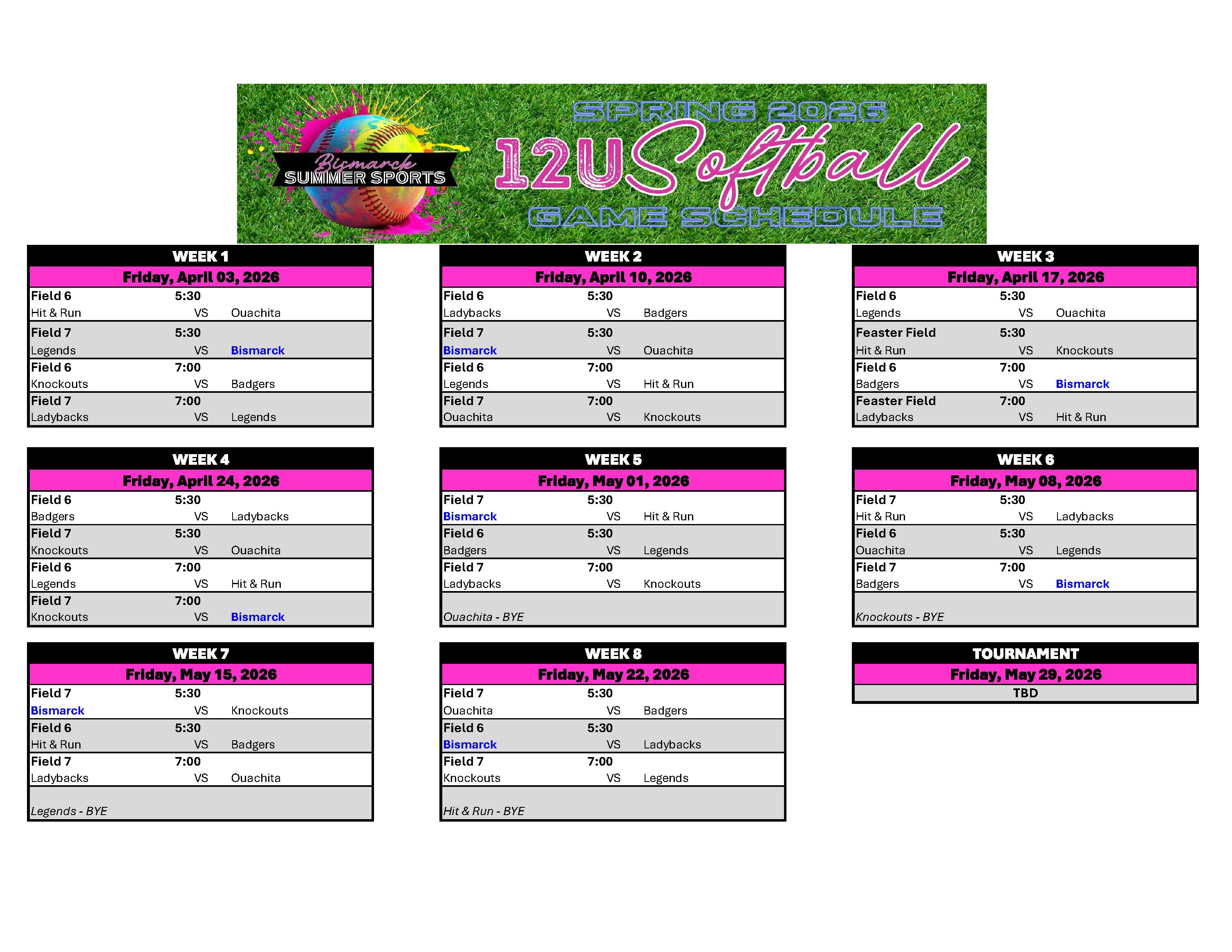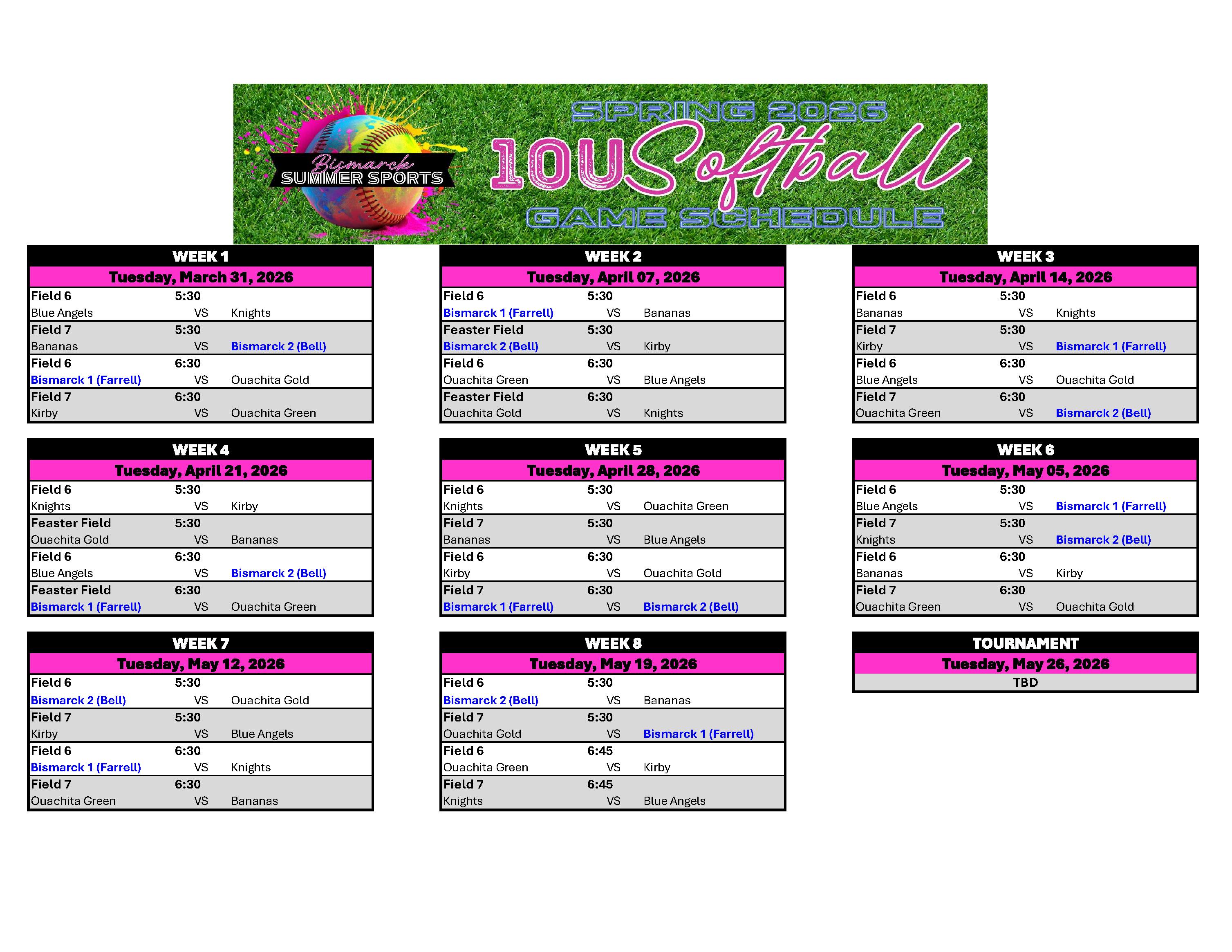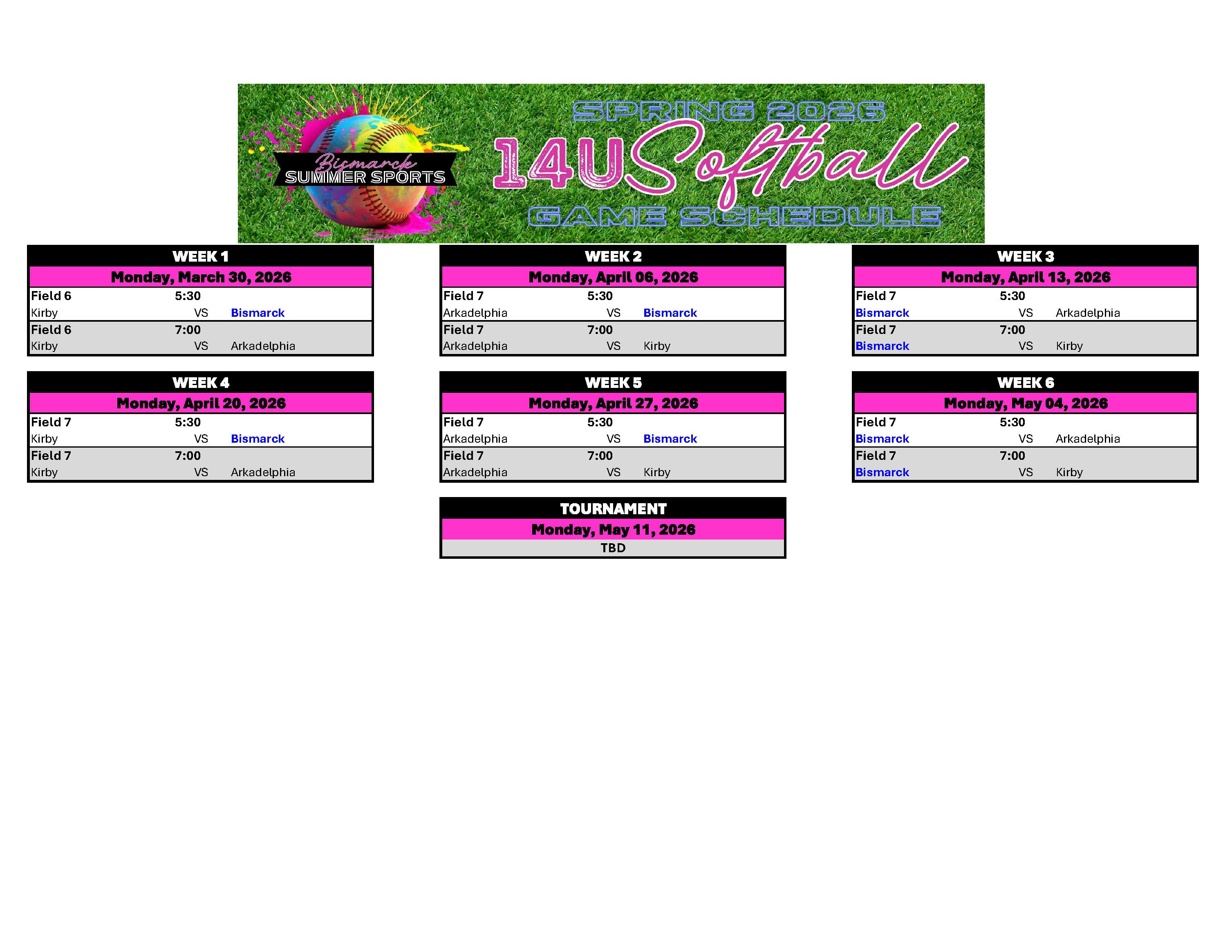 SOFTBALL GAME SCHEDULES 2026: